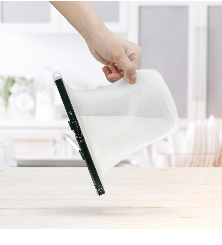产品功能:保鲜、冷冻、微波、防潮、防串味。采用食品级硅胶材质,健康环保,采用独特的双颊式封口,密封性能非常好,袋身有多种容量刻度,保存时可以更加清晰明了,非常实用,机械式的开口使抽取物品更加便利,收纳也更加方便。